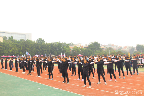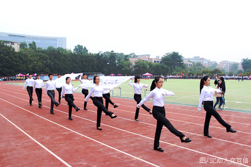 天公作美,阳光击退昨日的阴霾雨天。在校旗与院旗护卫队方阵引领下,班级方阵依次入场走向主席台接受检阅,整齐划一的服装、激情嘹亮的口号、独具风采的展示,无不展示人文学子蓬勃向上的精神面貌。此外,体操队与啦啦操队的表演也让人耳目一新。