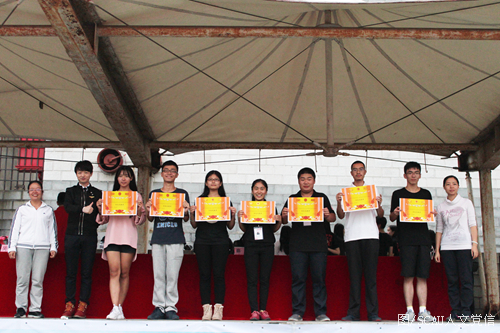 辅导员吴迪、成桂平为运动会总分排名前八的班级颁奖