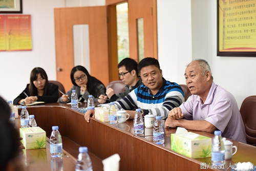 群益荔枝专业合作社蔡王师会长在座谈会上介绍“观音绿”栽培历史