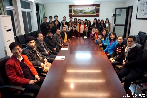 2016年11月26日下午,在副院长钟继军副教授的组织下,我院实验了一种新型的实践教学形式,邀请校外诗人詹天庠教授、东云、老马、客过亭、陈刀、红月亮、秋闻、梁岩、麦子、耳东、黎绮云,著名书法家郭汉义、摄影诗人小梅等一行14人参加我院实践教学活动,与我院师生交流诗歌创作与欣赏的经验。