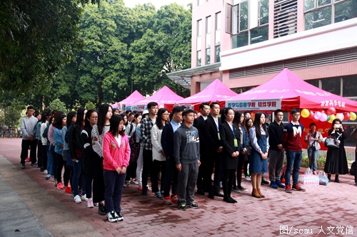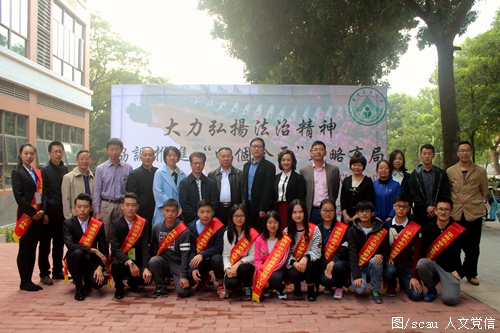 仪式宣读了137名华南农业大学普法宣传工作队队员名单,并为学生党员普法宣传工作队队员授予绶带。