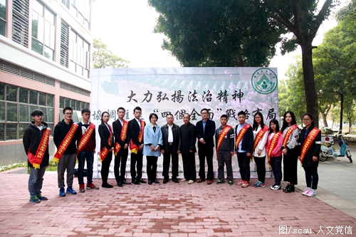 今年12月4日是国家宪法日暨全国法治宣传日。4日上午,学校在三角市举行2016年“普法宣传月”系列活动启动暨学生党员普法宣传工作队成立仪式。