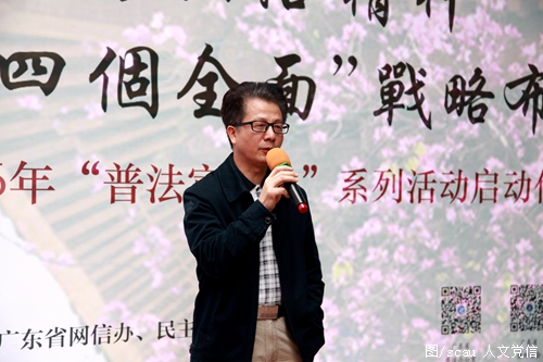 民主与法制社广东记者站站长李锐忠、人文与法学学院院长杨乃良,副院长钟继军、何方耀,公共管理学院党委副书记周正,数学与信息学院党委副书记郭灼,广东省七五普法宣传讲师团成员欧仁山教授、李艳梅教授、陈莉副教授,校党委宣传部李敏老师,广州粤高专利商标代理有限公司合伙人、生化部副部长单香杰等出席了活动。仪式由人文与法学学院党委副书记周艳华主持。