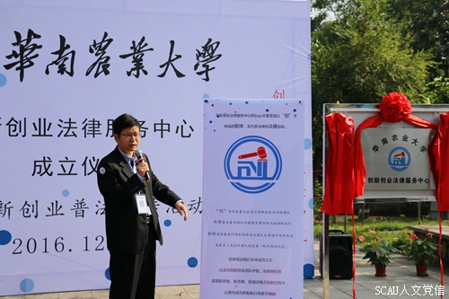 2016年12月4日,是我国第三个“国家宪法日”,也是第十六个全国法制宣传日。为了贯彻大力弘扬宪法精神,协调推进“四个全面”战略布局的主题精神,推动我国法制社会的建设,华南农业大学创新创业法律服务中心揭牌成立仪式暨创新创业普法宣传活动在我校法律援助中心顺利举办。华南农业大学党委副书记、创新创业学院院长陈少雄,广东省司法厅党委委员、副厅长何流明,广东省人大常委会监督司法咨询专家、民主与法制社广东记者站站长李锐忠,广州市人大代表、国信信扬律师事务所主任林泰松,广州市工商局12315指挥中心、消委会主任王月,广州市天河区人民检察院党组成员、反渎职侵权局局长彭军,广州市天河区人民法院审监庭副庭长张翼,我校招生就业处处长、创新创业学院常务副院长李国章,人文与法学学院院长杨乃良,以及来自广东省内有关高校与单位的法学、法律专家教授等嘉宾参加会议。