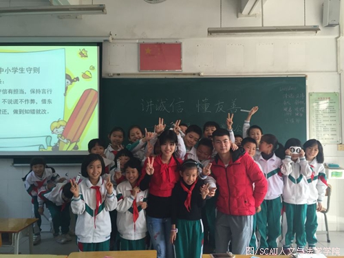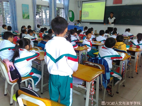 2016年12月5日,人文与法学学院在广州市天河区岑村小学开展义教活动,学生志愿者被分配至一至六年级各班为同学们上主题班会课。本次主题班会分为三部分,一、二年级的主题是:“安全伴我行,危险大家停”。三、四年级的主题是“做一个诚信的人”五、六年级的主题是“发扬长征精神,树立远大理想”。