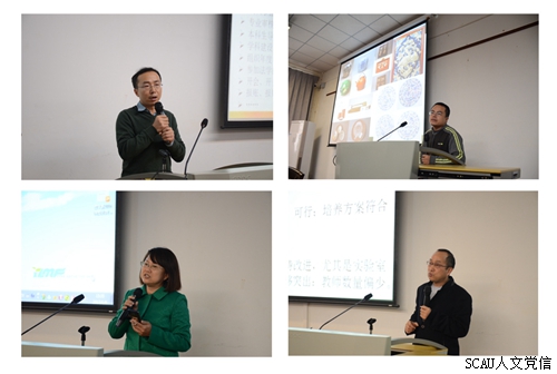 江保国、赵飞、王瑛、何方耀代表四个系从教学科研等方面汇报了各系一年以来所开展的工作和取得的成绩,指出这有赖于学院领导、同事的大力支持,同时也客观分析了各系存在的不足,表示新的一年要明确方向,突出重点,取长补短,扎实推进各项工作发展和创新。
