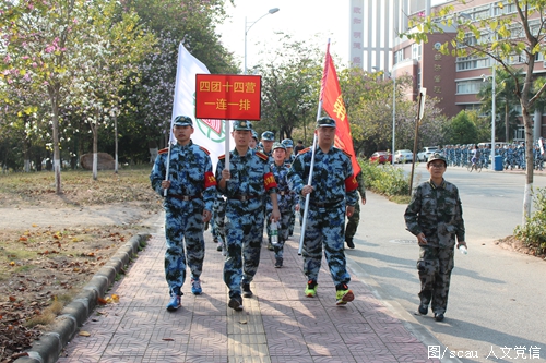 本次行军拉练中,军训师各团分五个区域出发,以校园环线为路线,全体新生在教官的带领下徒步行军绕校园一周,路程全长约为10公里。行军过程中特别设置了染毒地段、防空区、休息调整区等行军作战中常见的基本程序。进入相应区域时,教官便会带领学生实施“急行军”等相应的应对措施,让学生在徒步行军过程中了解行军、宿营、防空袭的基本程序,掌握必要的军事技能,切身体验军人在行军过程中的艰难险阻。