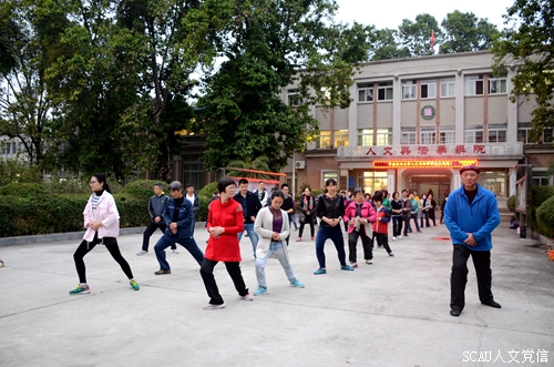 3月8日下午,华南农业大学人文与法学学院前面的小广场上,聚集着50余位师生。他们在著名武术家萧琨老师的带领下,一招一式练习起“太极拳”来。