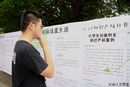 4月26日,正值“世界知识产权日”,为增进我校创业学子对知识产权的认识和理解,提高知识产权保护和防范意识,鼓励创业学子参与知识产权的保护和发展,扩大知识产权影响力,形成尊重知识、鼓励创新、保护产权的良好氛围,由科技处、图书馆、创新创业学院和人文与法学学院联合主办的以“创新改变生活”为主题的2017年“4.26世界知识产权日”系列活动于图书馆成功开展。