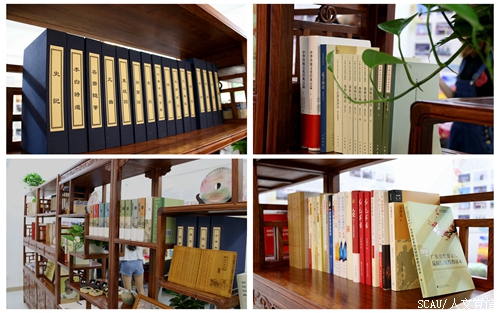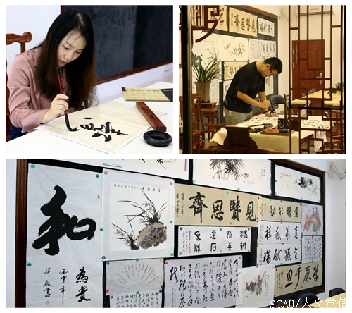 书画墙上笔走龙蛇的草书,平直方正的楷书,曲婉灵动的丹青尽收眼底。书架和博古架上琳琅满目的是出自人文与法学学子之手的特色刊物,《天地人》、《旗帜》……一本本刊物,一篇篇美文,凝聚了人文与法学学子的无尽情怀。精雕细琢的文化工艺品,不仅是在展现其优美的姿态,更似在诉说着一段历史和文化。能够勾起人丝丝点点回忆的华农校园文化纪念品,蕴含的是华农人的母校情怀。