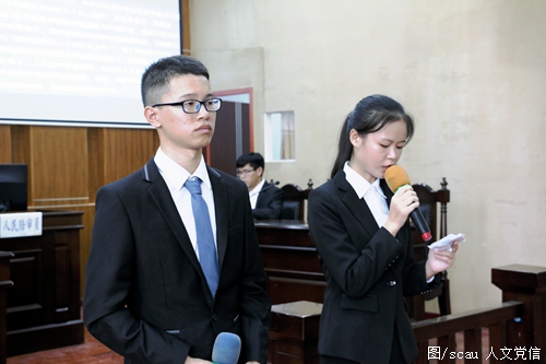 6月3日下午,华南农业大学与深圳大学、广东外语外贸大学、广州大学在华南农业大学第一教学楼模拟法庭联合举办模拟法庭大赛总决赛。