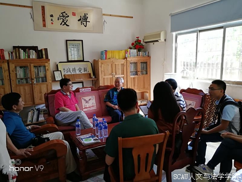 24日上午,调研组在李程主任父子的带领下来到88岁的台湾老人朱伟明的“怀乡屋”,在三层楼房里,倪教授首先向朱老赠送展现华农百年历史的《华南农业大学百年图史》,朱老回赠反映其父朱浩怀先生生平的《朱浩怀传》和其父所收藏书法精品的《会友集》。朱老定居平远后,大力收藏客家物品,并设展区免费供乡亲参观,俨然一座民间客家民俗文物博物馆。王恩奕主任和倪根金教授仔细查看朱老收藏的客家文物,发现一些稀有的农具可以用于我校农业博物馆的建设,调研组一一拍照存底。通过座谈交流,朱老先生表示愿意捐赠部分农具给我校农业博物馆,具体事宜有待进一步磋商。