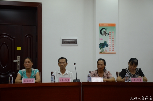 下午3点30分,寻根团一行在田东县政法委会议室里与田东县县长助理黄建峰、党委党校黄俊副校长以及文广局等各位领导以及红军烈属代表开展座谈交流。县长助理黄建峰主持会议,并代表了田东人民表示了对华农代表团的热烈欢迎。周副书记向田东县的各位领导介绍我校我院的基本情况以及寻根团近几天的学习内容及感受。周副书记表示,本次寻根团的目的明确,就是要通过体验式学习,探索红色基因,挖掘红色教育资源并互相学习,传承红色精神,学习当地优秀传统文化,锤炼党员党性。接着,县长助理黄建峰表示,我们党员同志要反思现在党员党性与老一辈党员党性的差距。同时,他强调正确的意识形态的重要性以及要提高村民的入党积极性。