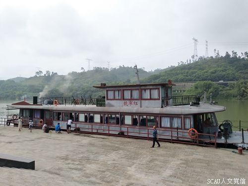 在搭乘“红军号”到达二牙码头之后,寻根团热情高涨地参观了红军亭和红军亭碑文,认真聆听红军亭来由,并前往红军会师广场参观、合影留念。