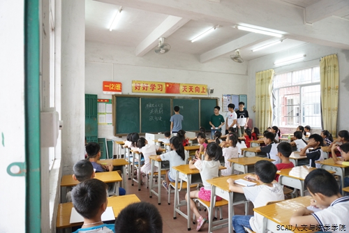 伴着第二天灿烂的阳光,队员们以饱满的精神继续投入到各项开设课程的教学,孩子们早早来到课室,期 待着讲解的老师和有趣的课程。课间休息的时候,孩子们纷纷围住了队员们。有的孩子说:“我喜欢老师的英语课,本来我很讨厌英语的,因为老师,我对英语感兴趣了。”还有的孩子说:“老师,我们想学画画”、“老师,我们一起玩游戏”。在支教的两天里,队员们看到了孩子们开始慢慢接纳新的老师,听到了孩子们真诚的话语和纯真的心声,发现了孩子们眼中对知识的渴望、对关爱的期待,大家都默默努力,为孩子们营造更好的学习环境,开拓更广阔的学习天地。
