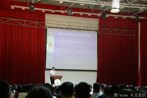 为加深入学新生对国家安全、集体安全和个人安全的认识,9月15日上午,人文与法学学院特邀华南农业大学保卫处治安科马卫国科长作为主讲人,在华山学生活动中心举行安全教育讲座,2017级全体新生及辅导员参加了本次讲座。