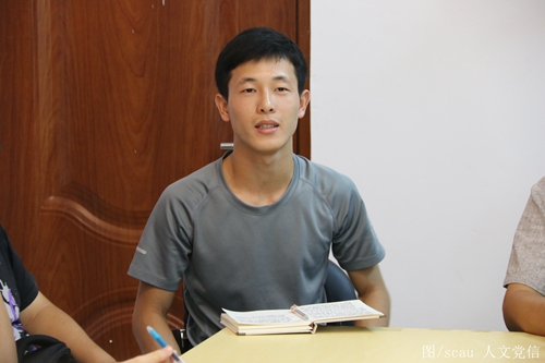 思想交流随时间流逝愈加激烈,现场的同学们纷纷向唐老师提出各种问题,从“对文本的阅读方法”和“研究儒学的切入点是什么”,再到“应该怎么对待伪书?”和“ 孔子到了现代他是否还会成为孔子”,氛围热烈。其中一位同学提问关于“四天读论语”活动的感悟,参与过此活动的15级法学戴锦宁师兄,分享了自己在不断重复吟诵名言的过程中自然而然产生的感悟,“文化之路不一定需要规划一个未来走向,情感会与经典相通,调动身体的文化基因,在经典中寻得与人交往,工作,持家等息息相关的事。”他建议师弟师妹在大学里尽早立志和合理规划,明白为何学习,让论语内化成接近目标的动力。