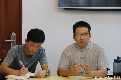 “如何了解孔子?从什么经典能了解孔子?”沙龙一开始,唐老师便以自己独创的十三经篇目口诀为切入点,说明十三经及其注释为儒家的经典,进而引出如何进行《论语》文本的阅读。唐老师自述,自己读了1268遍《论语》,其大概15920字,言简意赅。建议同学们要从文本出发,先读懂原文,不要依赖注释,切忌人云亦云。他借“学而时习之,不亦说乎”为例,指出“习”指的是复习、实践,更是见习,只有理论联系实际,才能找到自我学习的动力,学习经典要与生命结合,才能读懂其中的乐趣。
