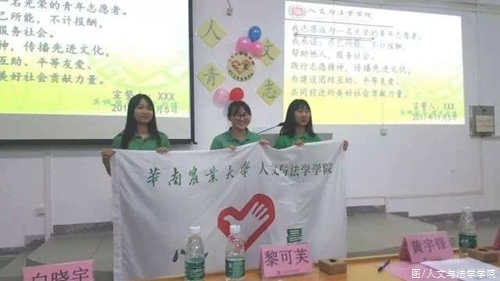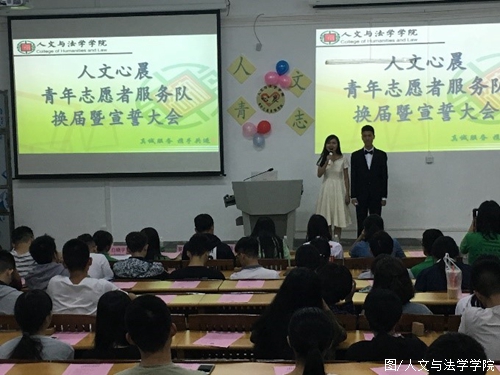 11月5日晚,华南农业大学人文与法学学院心晨志愿服务队在人文与法学学院院楼101举行了2017年青年志愿者换届暨宣誓大会。