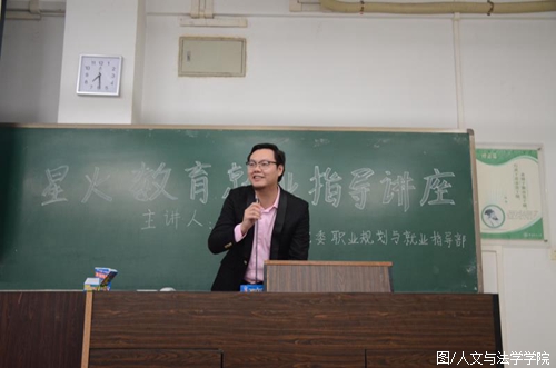 为增强学院学生开展职业规划的意识,了解当前的就业形势,11月29日晚,由华南农业大学人文与法学学院党委职业规划与就业指导部、星火教育联合举办的就业指导讲座于第五教学楼C栋301室顺利举行。本次讲座特邀星火教育梁俊老师为同学们分析就业形势,引导同学们树立正确认识就业观念。现场气氛活跃,同学们互动积极。