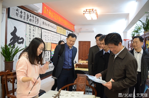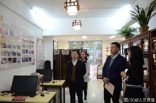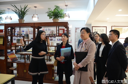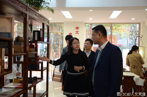 学院辅导员程夏敏老师作为讲解员,带领嘉宾参观我院思政实务化基地“德馨堂”内的党员活动区、翰墨丹青书画区、明德讲堂区、文化成果展览区以及学习讨论区,解答嘉宾参观过程中对“德馨堂”的建设成果及功能定位提出的疑问。堂内古韵雅致、琴声悠悠、茗墨飘香,嘉宾与我院工作人员热烈交流,无不表达了对“贴近学生、贴近生活、贴近实际”理念定位的认同,对“德馨堂”把传承中华优秀传统文化和践行社会主义核心价值观紧密结合在一起,从而提升华农学子的思想理念和道德文化修养、坚定文化自信的重要意义表示充分肯定。