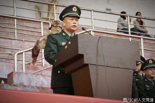 华南农业大学副校长,军训师长杨运东通知发表讲话
