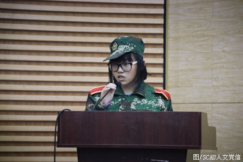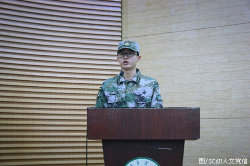 十四营营长陈威作为教官代表进行发言。他表示,军训的目的不是让我们觉得累和苦,而是在于对身体和心理的锻炼,在科学规律的作息中种下习惯的种子,养成良好的习惯,在军事训练、学习和生活中成为更优秀的人。同时,他更是对新生们寄予厚望,“希望同学们能在军训中对自己能做到高标准严要求,遵守队列纪律,克服困难,去掉平日的张扬与浮躁,能让人们见识到人文学子跨马定乾坤,执笔安天下的霸气。”随后,2017级学生代表龚炜琪作为学生代表进行发言,她表示军训虽然会很累很苦,但是我们一定能克服困难,坚持到底,努力成为一个有灵魂、有本领、有担当、有血性的新时代青年。