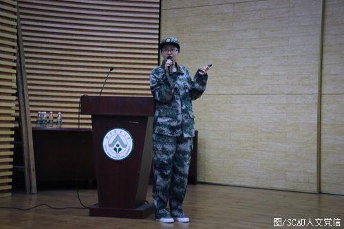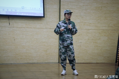 接着,自训教官们进行集体亮相。挺拔的军姿、嘹亮的口号、整齐的步伐无一不彰显着他们艰苦训练后自信风采。辅导员程夏敏为同学们讲述了军训期间的具体安排,辅导员黄子倩详细介绍了军训宣传的评比方法。最后,由学生代表向新生介绍了军装军容以及内务的评比要求,让同学们更好地了解军训相关的具体要求。