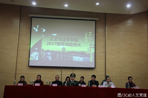 为激励全体新生以更为充实和饱满的精神状态迎接军训到来,培养同学们的组织性和纪律性,加强同学们对新生军训的认识,1月18日晚,人文与法学学院在真维斯礼堂举行2017级新生军训动员大会。人文与法学学院党委书记刘红斌、副院长何方耀、副院长钟继军、哲学班班主任袁建新、中文四班班主任刘红娟、中文三班班主任陆杰、历史二班班主任邵兆颖和全体辅导员老师出席本次大会。