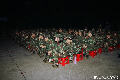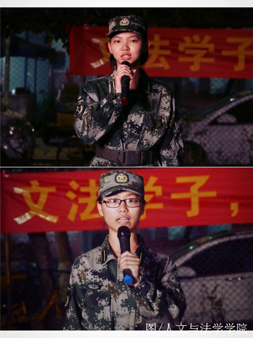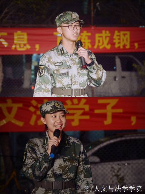 为推动人文学子在军事训练过程中树立竞争和创新意识,自觉提高自我,力争军训成果和精神文明建设双丰收。1月21日晚,人文与法学学院所属的四团十三营于启林北操场举行模范引领分享交流会,特邀第二届“模范引领计划”华南农业大学“文体之星”标兵奖聂瑞、第四届“模范引领计划”人文与法学学院“学习之星”黄灿松、人文与法学学院“文体之星”丁羽、人文与法学学院“道德之星”吴桐瑶、四团十三营优秀教官代表作为嘉宾向全体军训学生分享交流经验,本次分享交流会由四团十三营指导员程夏敏主持。