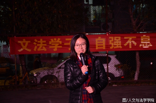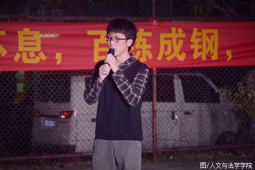 人文“文体之星”丁羽作为一个追求全面综合发展的学生,用自己大学期间身兼数职的经历,鼓励各位新生多挑战,多尝试,在各方各面的锻炼中拓展自身技能。在此基础上,丁羽着重为所有军训学生提出三点寄望:大一,不挂科是大学生最基本一项要求;第二,大学期间应根据自己的爱好,而非单看预期绩点高低来选择选修课;第三,不要受社会上“反智”思潮的影响,应勤奋学习铸就无悔青春。