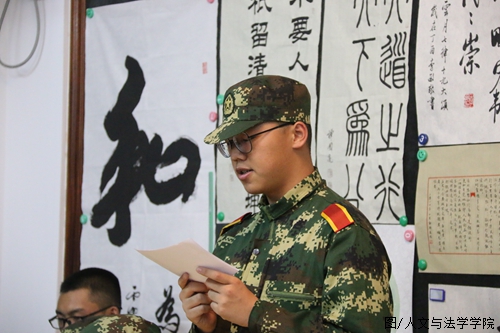 为推动同学们不断从思想上提高认识,深刻理解军训的必要性和重要意义,1月22日晚,人文与法学学院所属的四团十三营于德馨堂举行“学习十九大报告”分享交流会,各新生班级班长和团支书参加活动,由四团十三营指导员程夏敏主持本次分享交流会。