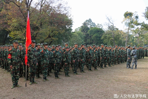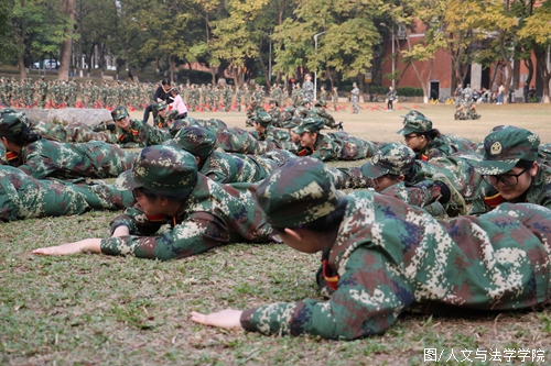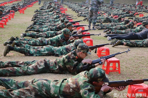 为培养军事技能,陶冶爱国情操,1月23日下午,人文与法学学院所属四团十三营的受训学子们在教官的带领下,于第三教学楼大草坪开展射击、战术训练。