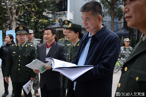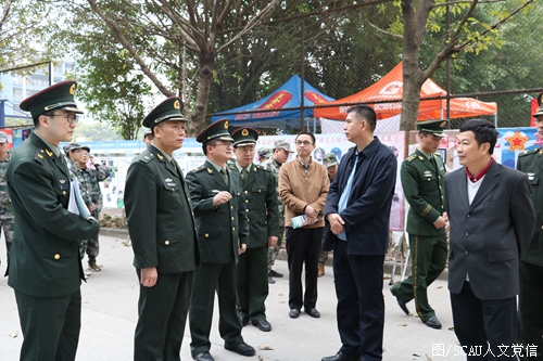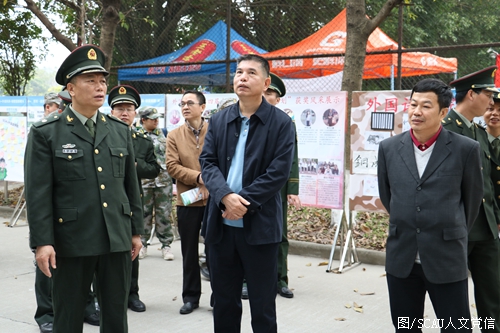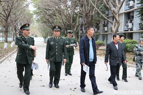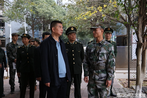 1月24日上午,华南农业大学党委书记李大胜、副书记钟仰进、陈少雄等一行来到启林北军训现场慰问人文与法学学院所属四团十三营军训师生及教官,并指导我院军训工作。