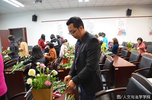 2018年3月8日,为庆祝国际三八妇女节,学院学委和学院部门工会专门为全体女教工组织了花艺主题的庆祝活动。主题活动在7号楼115室举行。活动前期,我院工会在网络平台上积极宣传,老师们积极报名参与。在活动现场,更不少教工带着小朋友一起来参加本次活动,学习花艺,现场气氛热烈,欢声笑语不断。