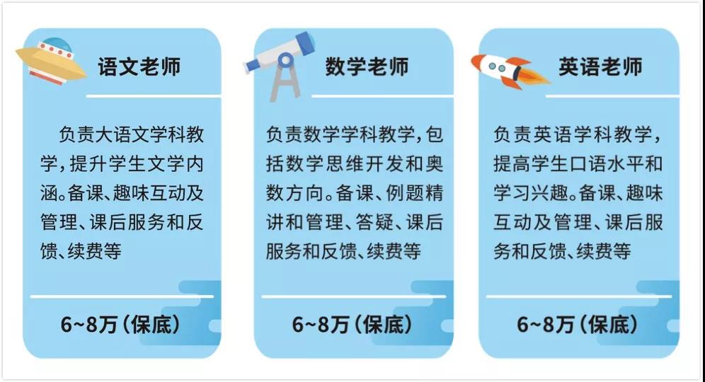 未来5年内,我们需要50个分校校长、150个教学点负责人、500人的学科年级主管,你的发展,潜力无限!