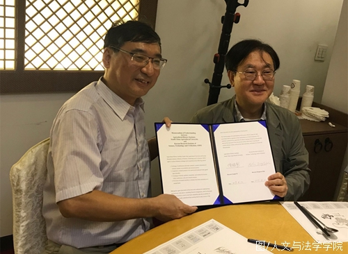 During the meeting, at the invitation of the Institute of Science, Technology and Civilization of Jeonbuk National University in South Korea, Ni Genjin held exchanges and discussions with 9 members of the institute. Director Dong Wong SHIN welcomed the arrival of Ni Genjin and Guo Xinyi, and introduced the history of the institute and the research directions of the members to the guests. Subsequently, Ni Genjin introduced the history of the China Agricultural Historical Heritage Research Institute of South China Agricultural University to the members of the institute and expressed his desire to strengthen cooperation. Dong Wong SHIN stated that the Korean Institute of Science, Technology and Civilization is publishing a series of books "The Science and Civilization in Korea" that unify the history of scientific development of Korean civilization and various important studies published in 13 volumes, expected to be published in 2020. If the book is fully published, the Korea Institute of Science, Technology and Civilization will send this series of books to the China Agricultural Heritage Institute of South China Agricultural University. Finally, Ni Genjin and Dong Wong SHIN signed a MOU to strengthen the future cooperation between the two institutions. Before the discussion, Professor Lee Kui Jae, Vice President of Jeonbuk University, welcome Professor Ni and his party.