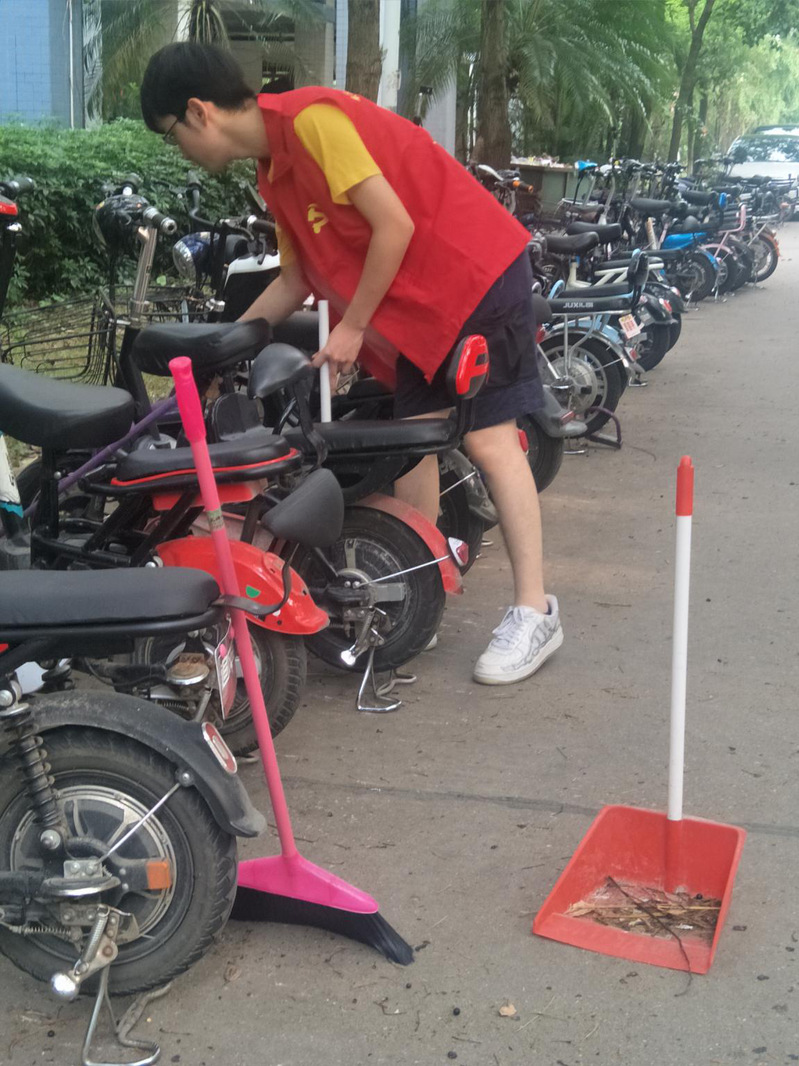 Accordingto the actual situation of the members of the community, the Partybranches of the college organized cleaning activities by districts,and comprehensively cleaned the main roads, flower gardens, overheadfloors, corridors and other places next to the student dormitories56-59 in Qilin North District. Of the electric bikes were sorted out,and the campus was clean and tidy