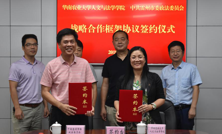 The College of Humanities and Law of South China Agricultural Universityand the Political and Legal Committee of the CPC ’s LeizhouMunicipal Committee held a signing ceremony for the strategiccooperation framework agreement