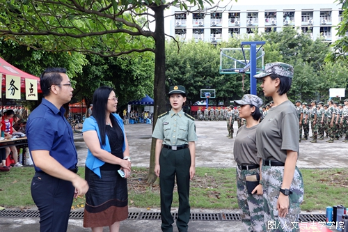 Leaders of the College of Humanities and Law condolences to military training freshmen