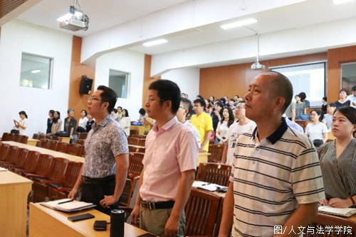 The meeting kicked off with all teachers singing the school songs of theFaculty of Humanities and Law. Dean Yang Nailiang announced toeveryone that the congregation of the wisdom of students and teachersand the creation of a year-old school song was born. The school songembodies the unique style and spirit of the humanities, and is worthyof being sung by every teacher and student in the school.