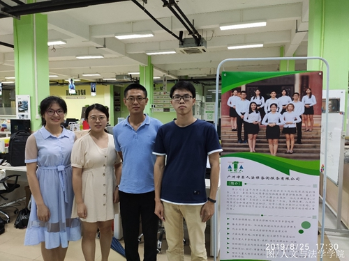 On the afternoon of August 25th, two teachers, Faculty of Humanities andLaw, Wang Yue and Xiong Qiang, conducted a return visit to ourcollege ’s employment in the “Maker Space” in Taishan District.The target of this return visit is Chen Yulin, class 2 of the 16thclass of law in our college, and the team of the "Legal GiantInnovation and Entrepreneurship Legal Service". According toChen Yulin, the entrepreneurial project was launched in 2017. Theteam members are mainly students from the Faculty of Humanities andLaw, and they also attract students from other colleges. The currentsize of the team has reached 17, of which 8 are full members, and therest are interns.