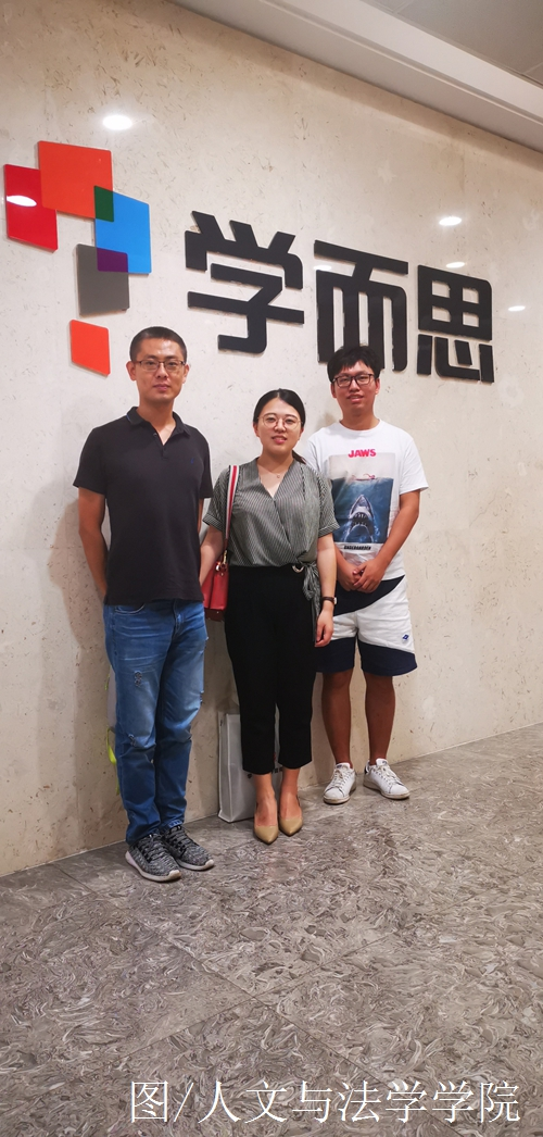 In order to gain an in-depth understanding of the specific workingconditions of graduates in employment units, actual employmentexperience and evaluation of employment guidance work, on August 16,2019, two teachers, Wang Yue and Xiong Qiang, counselors of theFaculty of Humanities and Law went to Guangzhou to study and thinkEducation Technology Co., Ltd. and Guangzhou Gaoshan CulturalTraining School conducted graduate employment return visits.