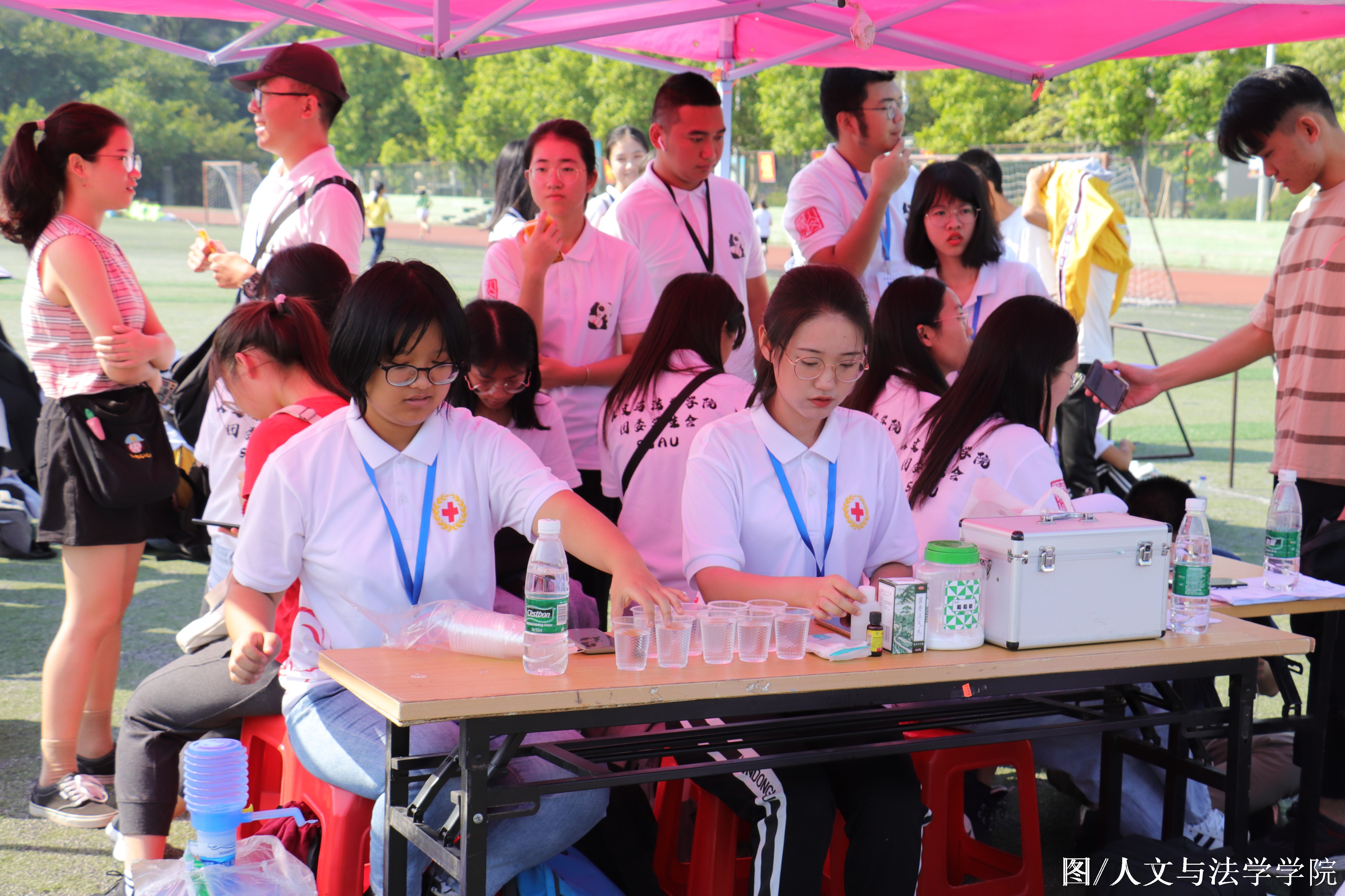 Thesmooth holding of the advance games of this Games will be inseparablefrom the hard work of the staff. The staff of the College YouthLeague Student Committee insisted on recording time, maintainingorder and other positions; the students of the College Red Crossprepared glucose and drinking water for the athletes, and wereequipped with medical boxes to ensure the safety of theparticipants.