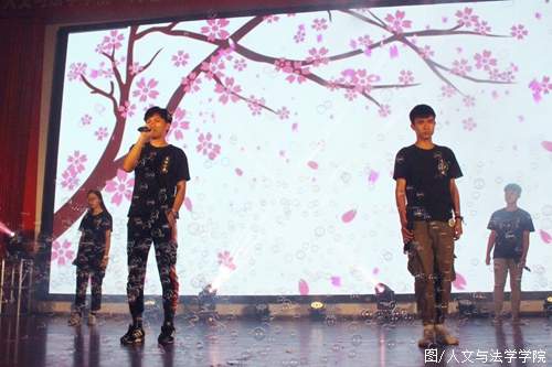 The humanity song team brings the song string "young not lonely",tells the young mind, the road to become a talent always with lonelywalk, wish the graduates who are about to bid farewell to the campuson the road to march forward courageously alone. Accompanied bybursts of drums, stepping on the small step, the folk dance team ontothe stage. Water sleeve is white, dance graceful, dance "yuepeople song" lead the audience through the time, taste yuewoman's implicative and graceful beauty. The drama team's "time like water" reproduces the students' club life in just tenminutes. From being young and ignorant to being mature, collegestudents in their prime pursue their dreams and grow up together inthe community life. The humanity song team brought the song "livinglife", the melodious singing is full of sadness and helplessnessof parting, the full and solid high pitch wins the audience bursts of cheers.
