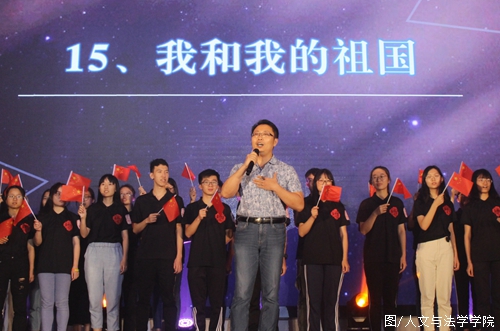Shiyu and wang yue prepared a surprise program for the graduates, with asong "sunshine in the crack" for the graduates toencourage, "you have to believe that you are the most brilliantsunshine in your life, the most beautiful baby! At the end of theevening party, xiao hua, the deputy secretary, took the stage to leadthe chorus of "I and my motherland".