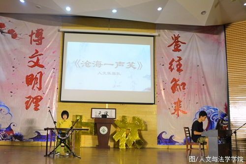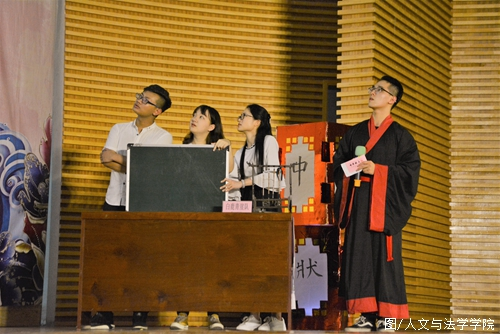 This activity started with the musical instrument performance of the art troupe of the humanities and law school -- "a smile from thesea". The girl in the han costume played the guqin, and the boy in the modern suit played the piano together with the forthright music, as if the east and the west had a collision, which deeply attracted the audience. Then, the host slowly appeared and the gamebegan. There are three rounds of this activity, which are "localtest", "trial" and "trial". There were eightteams in the competition, and four of them made it to the next round.After the local examination, it was interlaced with the dance "cominghome and coming back" brought by the folk dance team of the arttroupe of the college of humanities and law. The dancers, dressed inblue, traipsed onstage. The music was melodious and graceful, the dancers smiled with low eyebrows, like a dragon, from the wind back to the sleeve, yingsun turned mother of flowers.