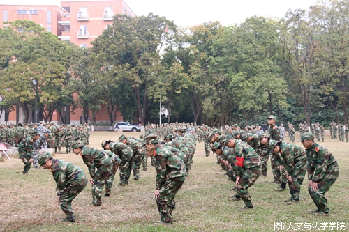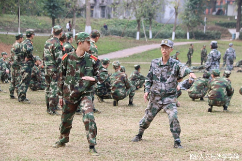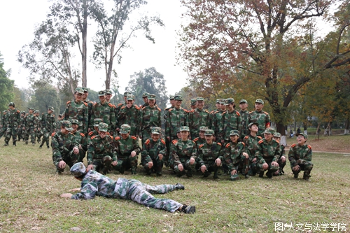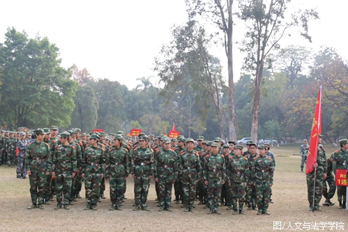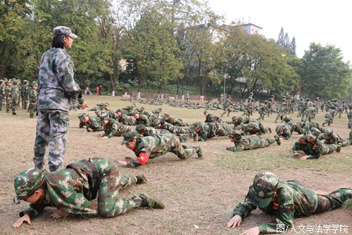 "Sunsetwest mountain red clouds fly, the soldiers hit the target to campback to camp back..." Under the setting sun, students of Collegeof Humanities and Law humanities returned home to their dormitoriessinging with a full load, and with military songs, orderly step bystep towards a better themselves.