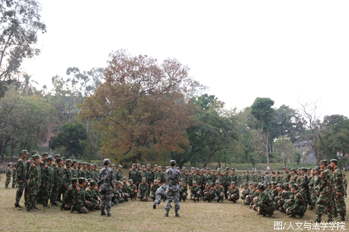 In order to enhance students' military skills, strengthen their bodies,combine theory with practice, and promote national defense education,on the afternoon of January 14, the 14th Bbattalion of the 4thrRegiment of the Ccollege of Hhumanities and Llaw carried outtactical training activities on three lawns. With the head of thecommand, all the students in the training in thedrillmasterinstructor led the mighty rush to the destination, all theway loud and clear military song, high morale. With the fragrance ofgreen grass and soil, the training activities are carried out in anorderly manner.
