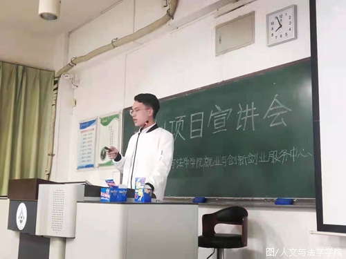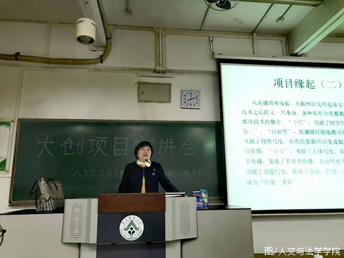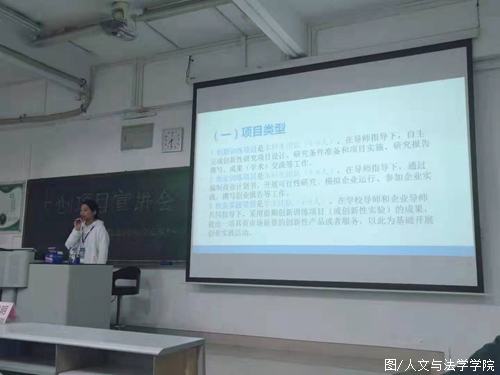 Atthe end of the seminarmeeting, LAN Lan XxuemMming, a teacher from theEemployment, and Iinnovation and Eentrepreneurship Sservice Ccenterof the Ccollege of Hhumanities and Llaw, made a speech, explainingthe significance of the great innovation projec Da Chuang Project. Hesaid that t: "the Iinnovation and Eentrepreneurship TtrainingPprogram for Ccollege Sstudents is an opportunity for students totrain themselves, internalize their knowledge and improve theirprofessional quality. The reason why schools and colleges have alwaysattached so much importance to this section is that students canengage in research and practice, and put their knowledge into realuse, so as to apply what they have learned. He finally encouraged thestudentI hope you can seriouslyto consider this matter and activelyparticipate in it."